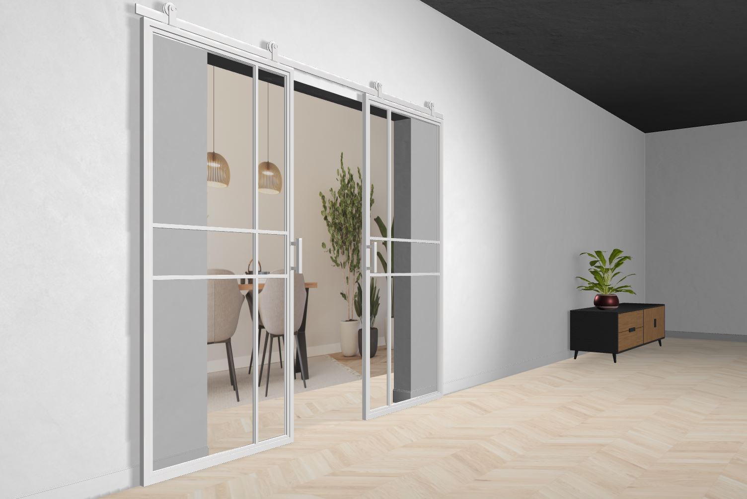 Doppel Lofttür Stahl-Glas-Schiebetüre Modell Noah - Industrial Loft Style