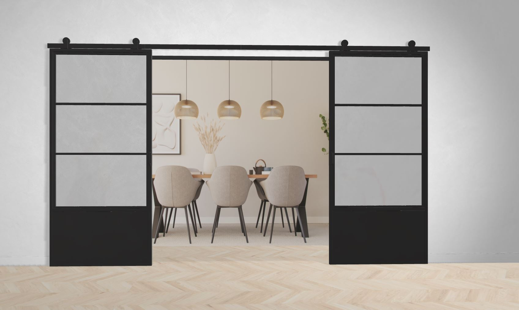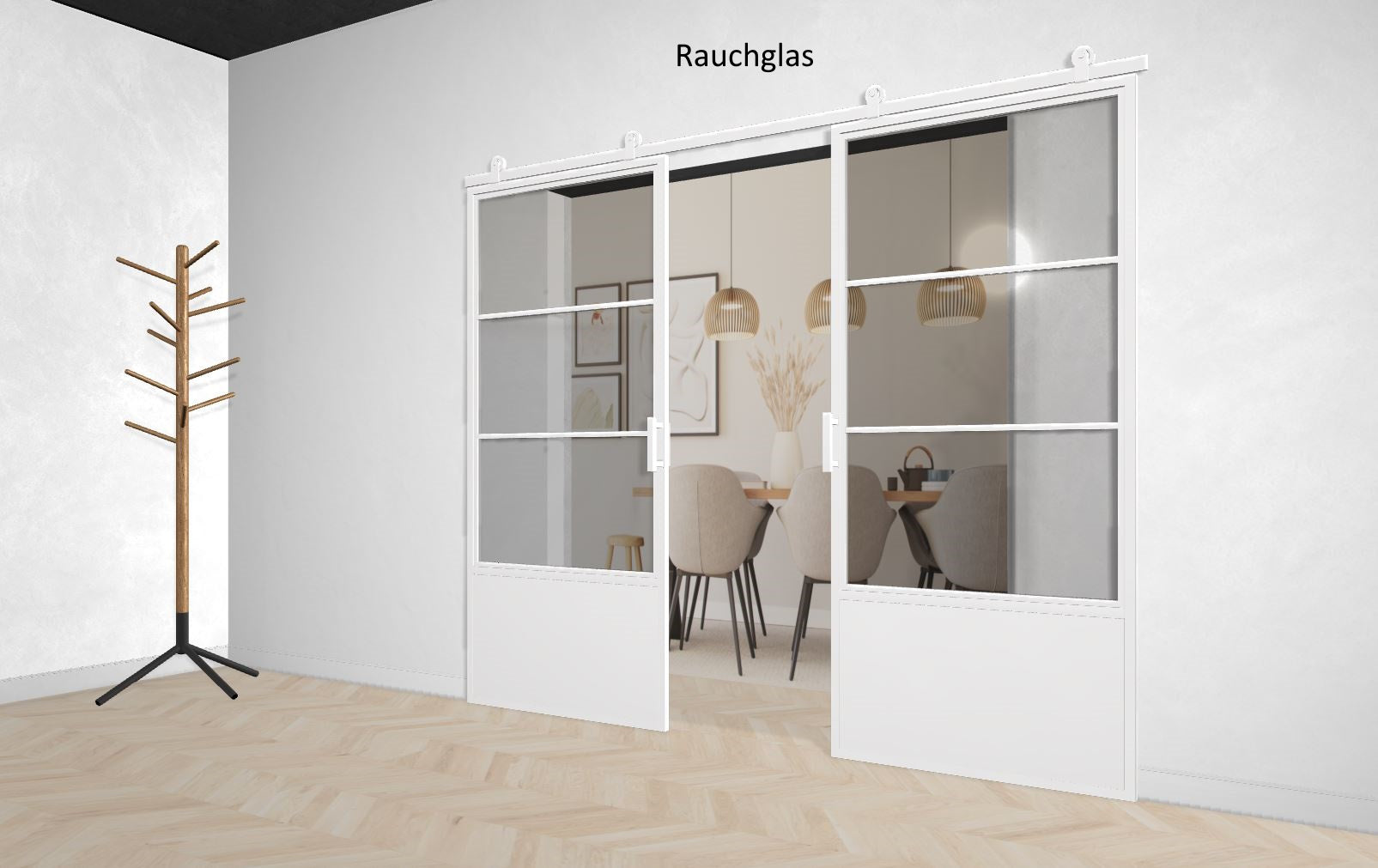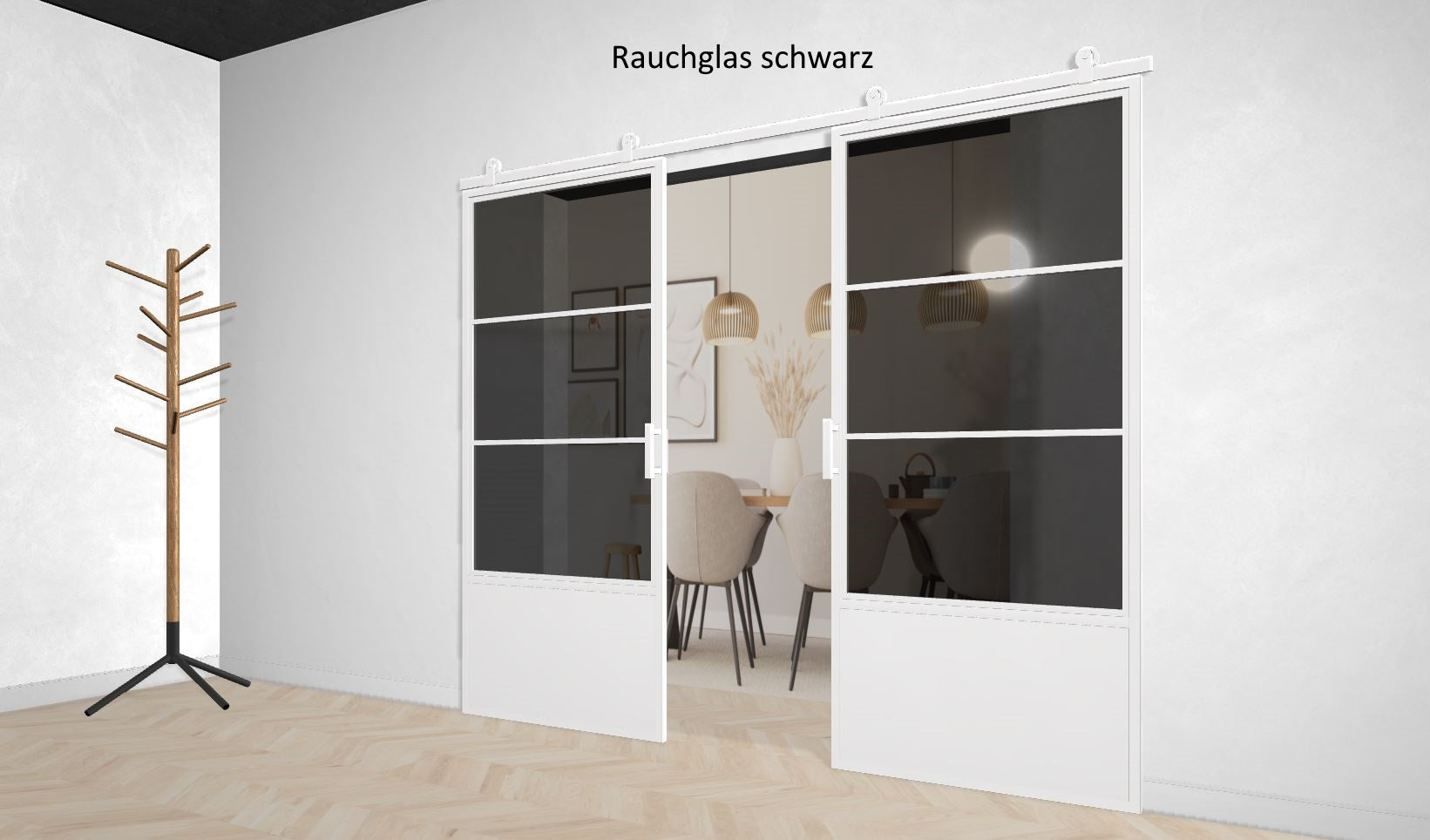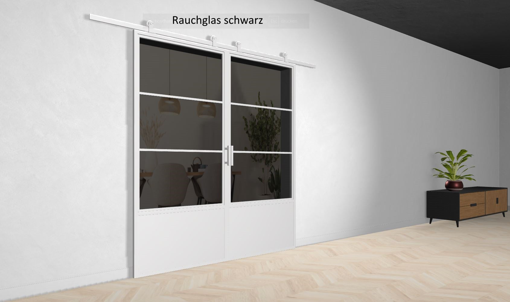 Zu diesem Wert addieren Sie bitte einmalig + 10 cm bei Barn Doors (Holzschiebetüren) und 8cm bei Lofttüren.