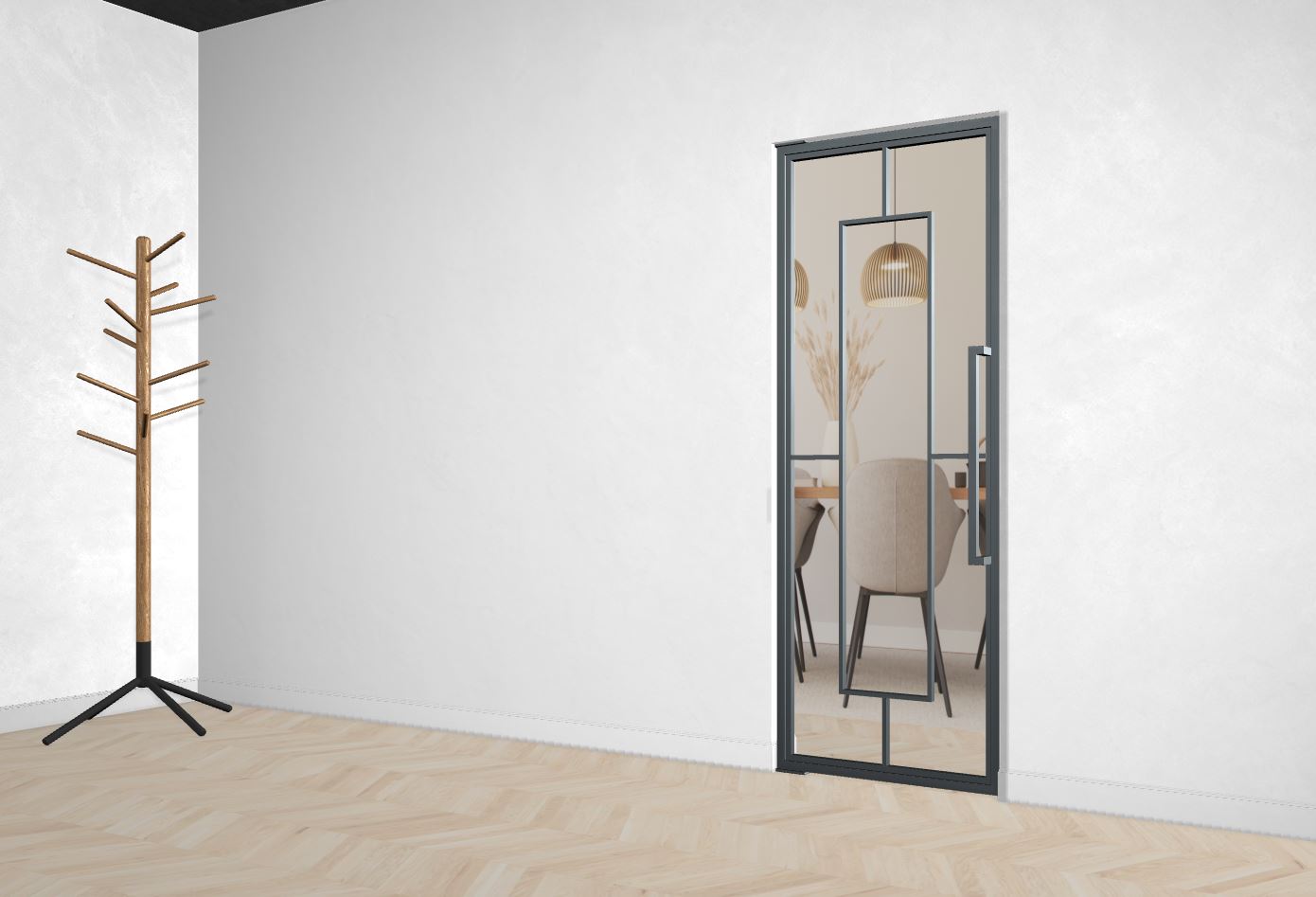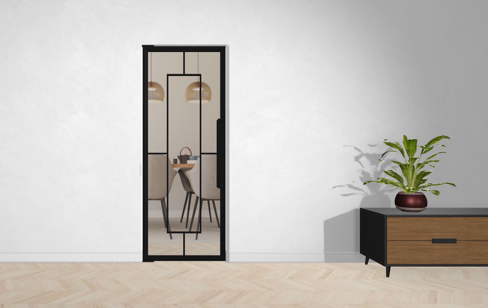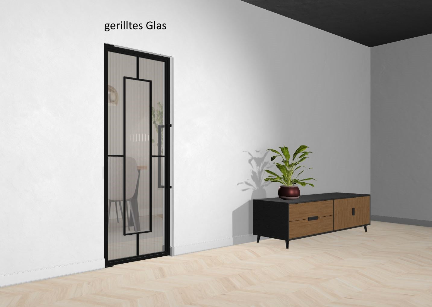 Die Türe kann auch vor einem Einbauschrank montiert werden, oder Du lässt Deinen Fernseher hinter der schicken Türe verschwinden. Deiner Phantasie sind keine Grenzen gesetzt.