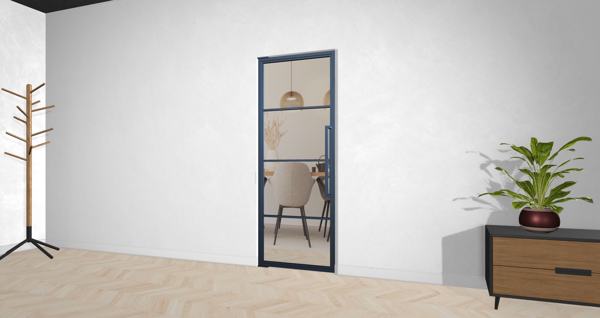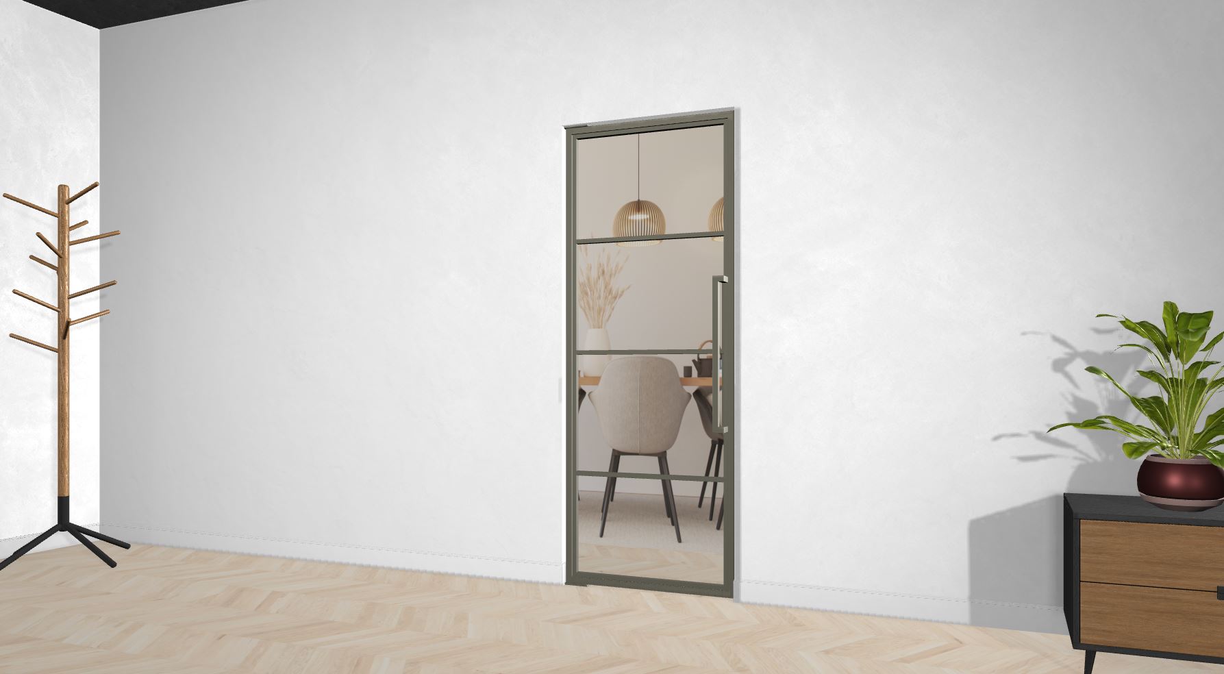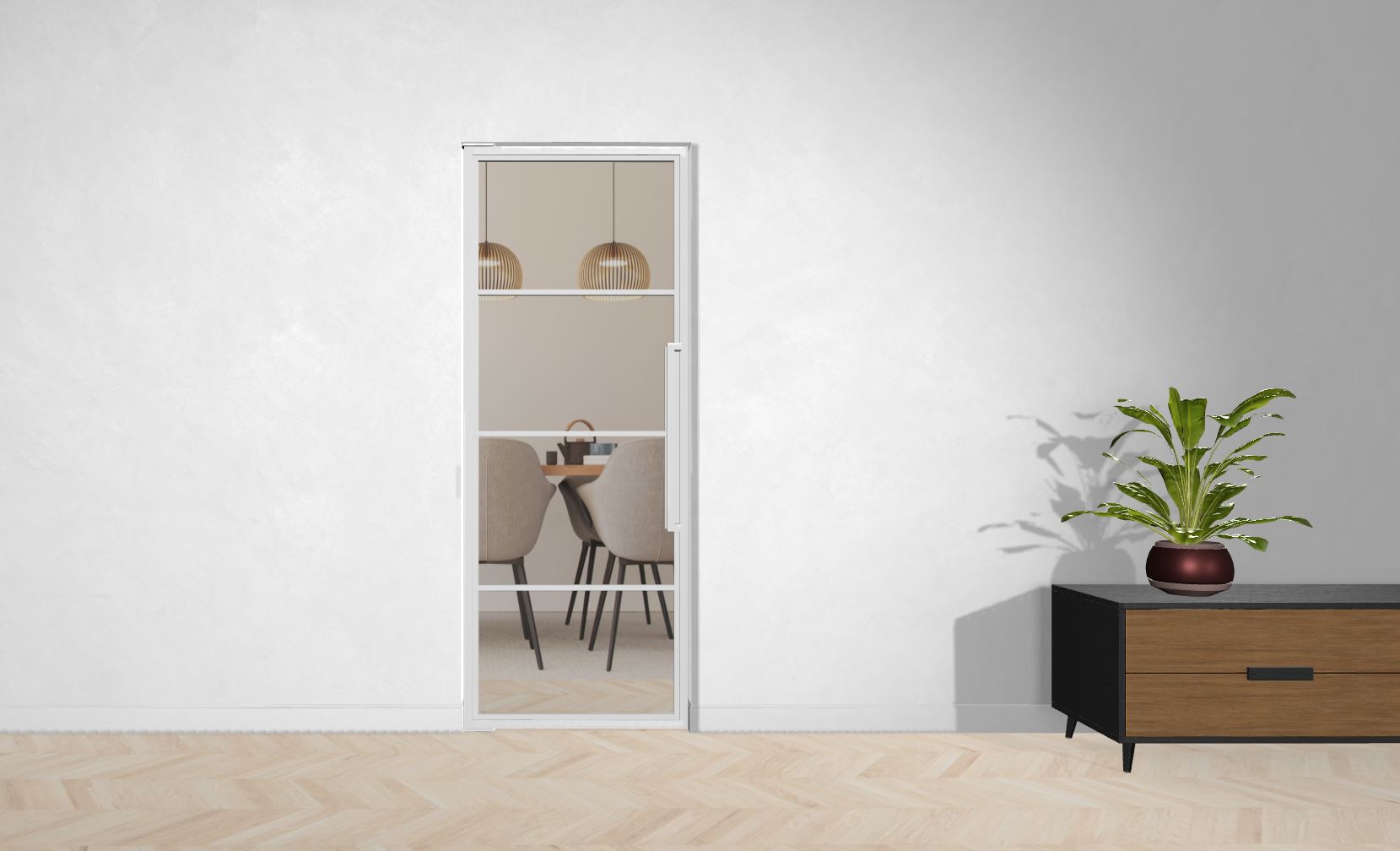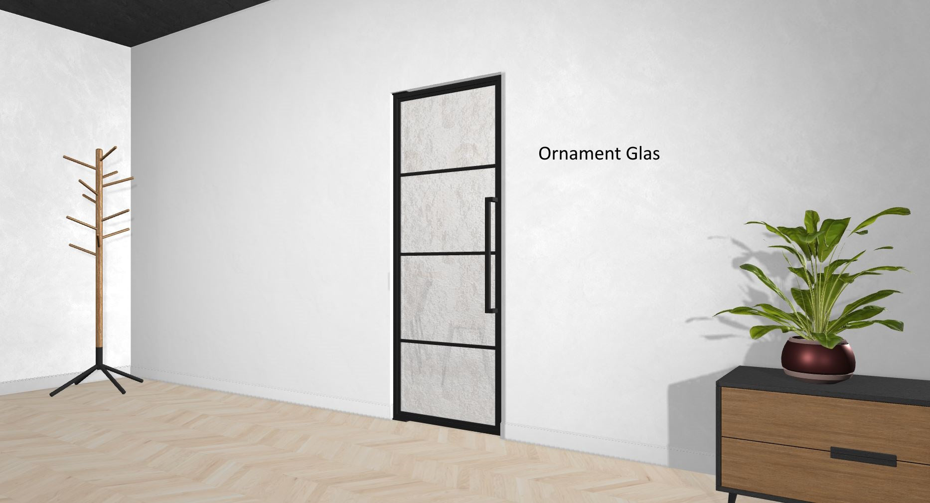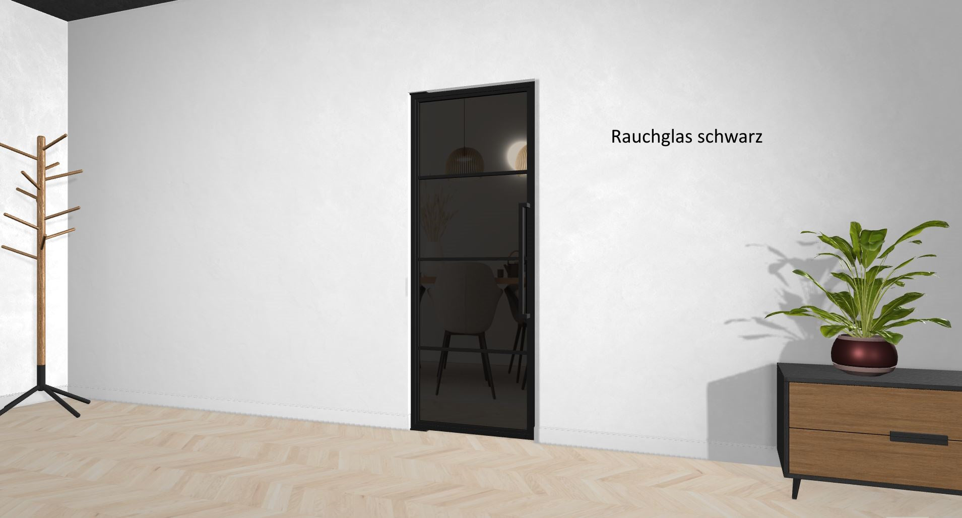 Die Türe kann auch vor einem Einbauschrank montiert werden, oder Du lässt Deinen Fernseher hinter der schicken Türe verschwinden. Deiner Phantasie sind keine Grenzen gesetzt.